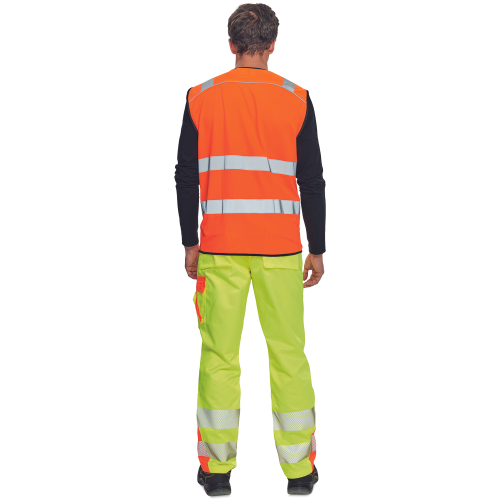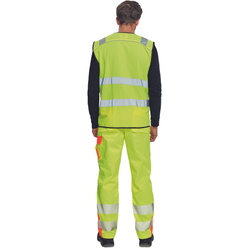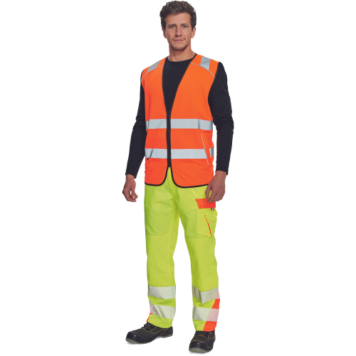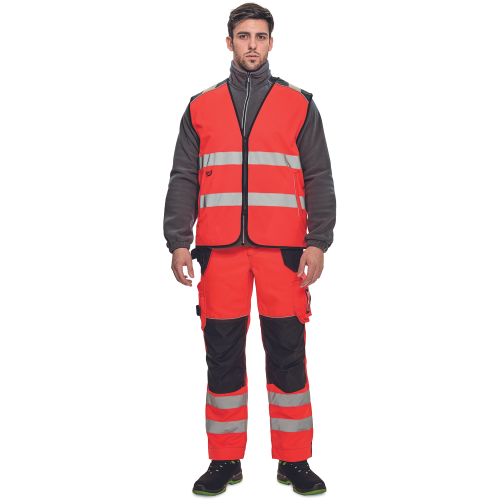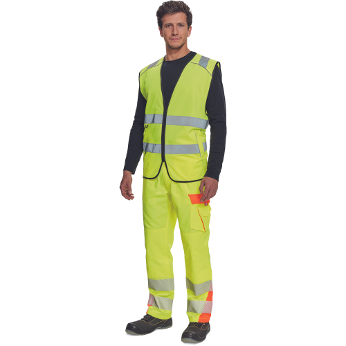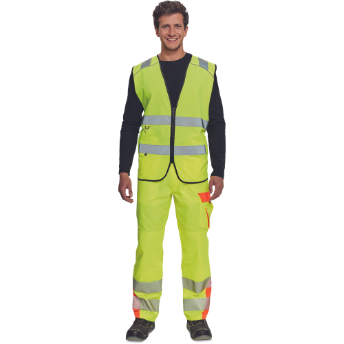 High-visibility vest with 3M stripes, front fastening with zip, two LOCK SYSTEM kangaroo front..