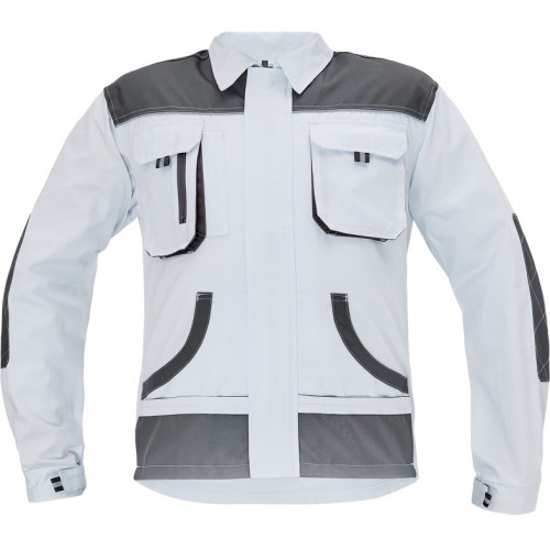men´s working jacket with retroreflective stripes on shoulders, sleeves and bottom part, zip fasteni..