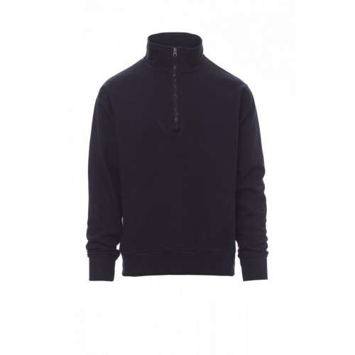 Men’s sweatshirt with matching half zip in plastic with metal pull, fitted sleeves, stretch rib cuffs and hem, reinforced seams.