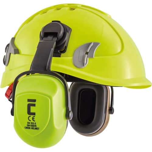 Dielectric ear muffs, which are solely intended for use with industrial helmets. Their high-visibility colour is suitable for outdoor use. Attenuation - 27dB.