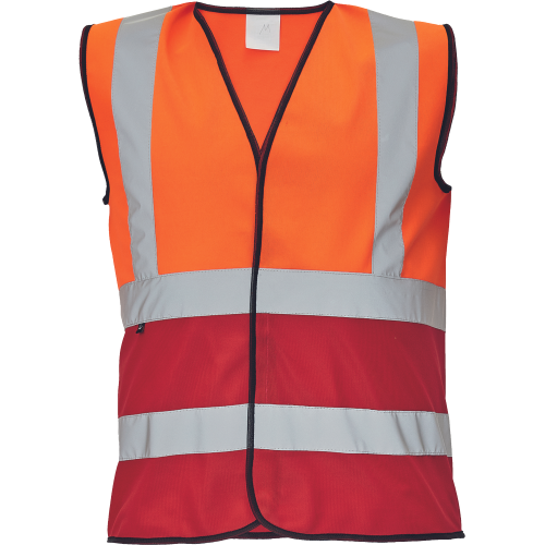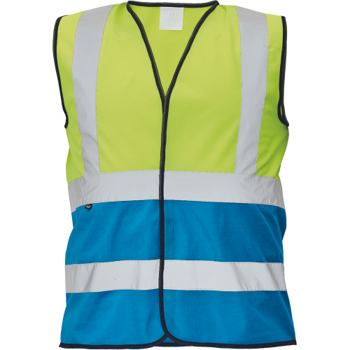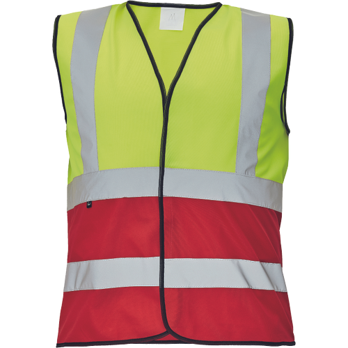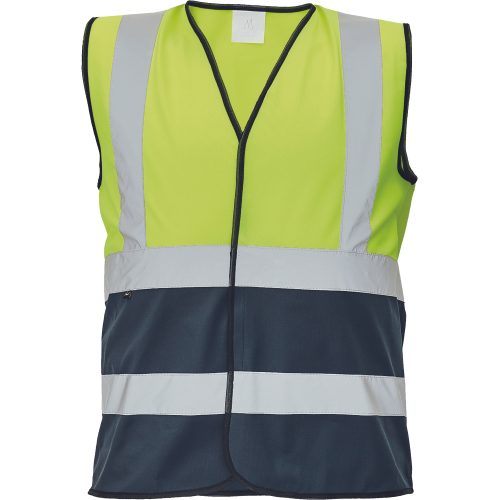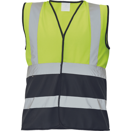 High-visibility vest with 3M stripes, front fastening with zip, two LOCK SYSTEM kangaroo front..