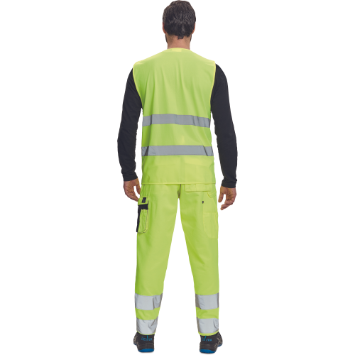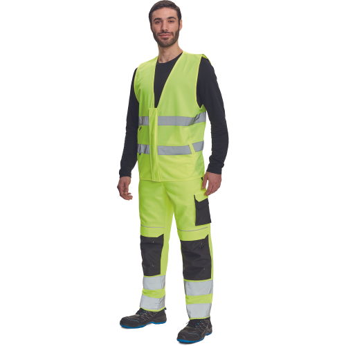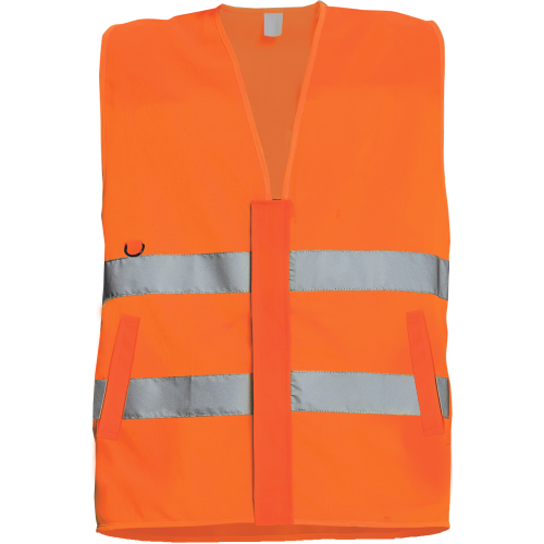 High-visibility vest with 3M stripes, front fastening with zip, two LOCK SYSTEM kangaroo front..