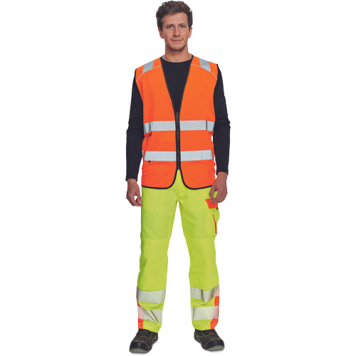 High-visibility vest with 3M stripes, front fastening with zip, two LOCK SYSTEM kangaroo front..