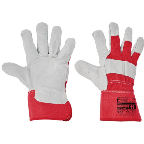 Gloves made from cow split leather, reinforced with a double layer on the palm and index finger and ..