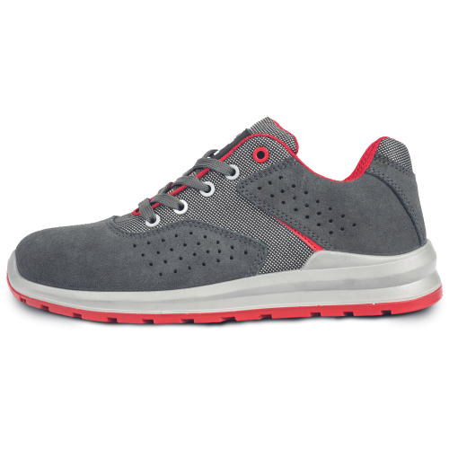 Comfortable safety shoes with steel toe cap, certified to S1 safety class, according to EN ISO 20345:2022. Anti-static insock. Double density PU/PU outsole with energy absorption in the heel. Durable split suede leather upper in combination with oxford fabric with increased breathability thanks to perforation. Great choice for indoor jobs, such as automotive, logistics or industrial production.