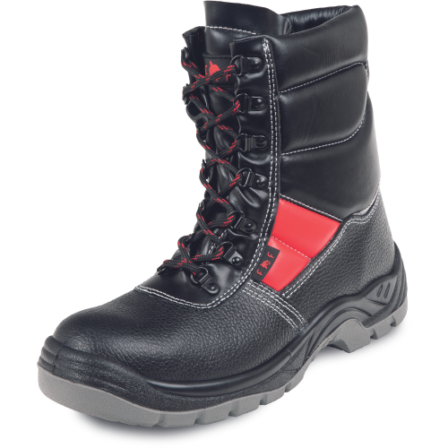 Safety High Ankle shoes – safety steel toe cap and steel insole, PU/PU outsole antistatic and oil resistant, energy absorption in heel area, upper - black buff alo print split leather water resistant, lining grey articial fur.