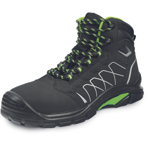 • modern safety ankle boots with a composite anti-puncture insole and a composite toe cap that protects against compression with a force of up to 15 kN or a load weighing up to 20 kg falling from a height of 1 m • the anti-static sole made of a combination of polyurethane and very durable rubber guarantees not only comfort, but also safety thanks to the non-slip properties of the sole, which is also resistant to oils and abrasion • the upper part of the shoe is made of natural leather "NUBUCK" and the inner lining is made of breathable polyester • reflective elements guarantee increased user visibility • this model is equipped with a comfortable inner insole, which, thanks to the gel heel, absorbs shocks even better and brings a maximum feeling of comfort during work • these shoes look like sports shoes, but they protect your feet perfectly