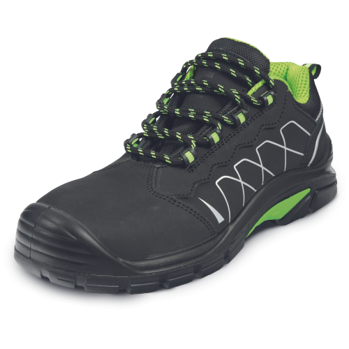 • modern safety low shoes with a composite antipuncture midsole and a composite toe cap, which protects against compression with a force of up to 15 kN or a load weighing up to 20 kg from a height of 1 m • antistatic outsole made of a combination of polyurethane and very durable rubber is not only safety thanks to the anti-slip properties but also resistant to oils and abrasion • the upper part is made of genuine leather "NUBUCK“, and the inner lining is made of breathable polyester • reflective elements guarantee increased user visibility • this model is equipped with a comfortable inner insole, which thanks to the gel heel absorbs shocks even better and brings a maximum feeling of comfort during work • these shoes look like sports shoes, but they perfectly protect your feet • extra pair of shoelaces in each box