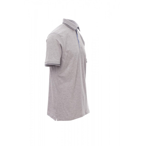 Men’s short-sleeved polo shirt with 3 white buttons, inside collar, flap and side vents in Oxford blue, rib collar and sleeve edging with fine contrasting trim, underarm eyelets, side vents with reinforced seams, side reinforcement tape, stretch seams, inner neck tape