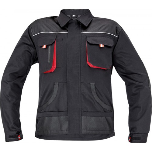 men´s working jacket with retroreflective stripes on shoulders, sleeves and bottom part, zip fasteni..