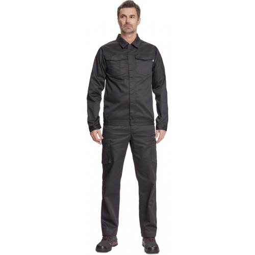 men´s working jacket, zip fastening covered by placket with velcro, 2 big chest pockets with flap, elastic bottom on the sides, sleeve cuff with velcro fastening