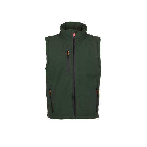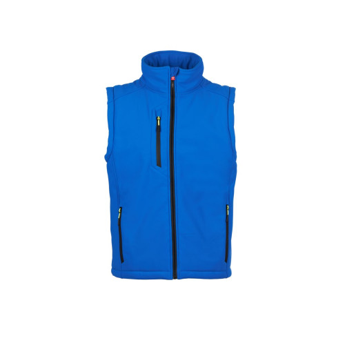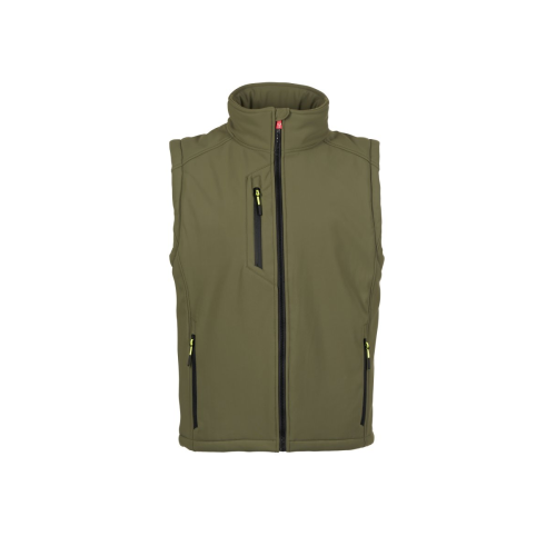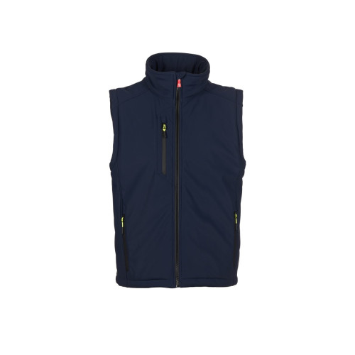 Men’s padded soft-shell vest, SBS zip closure with "semi-auto lock" metal slider and customised pull. Inner collar with polar fleece side details. Retroreflective strips on the lower back. Two side pockets with zip fastening, one breast pocket with coated zip. Fluorescent pulls. One internal welt pocket, closed with Velcro. Adjustable bottom with customised stoppers.