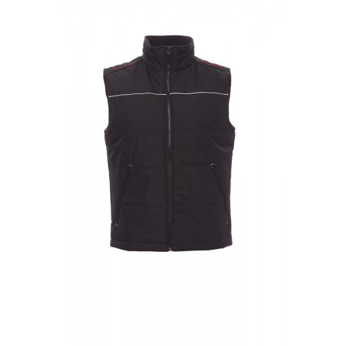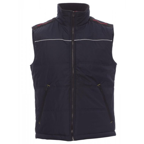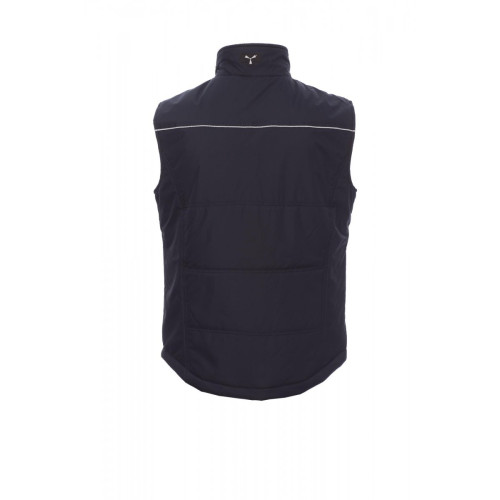 Unisex vest, 5 mm plastic zip with metal pull, contoured back, two roomy outer pockets with zip, reflex piping on the chest and back. Padded, high-density lining, inner fleece collar, one inner pocket.